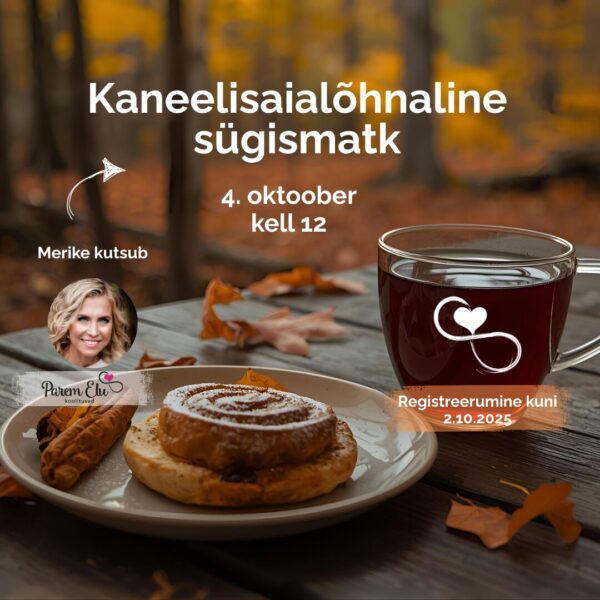 Täpselt 4. oktoober on ka rahvusvaheline kaneelisaia päev. Seepärast ühendame kaks meeldivat tegevust – rahulik sügismatk Tilleoru looduses ja hubane koosolemine Tillu kohvikus Põlvas, kus ootavad meid värsked kaneelisaid ja tassike kuuma teed.